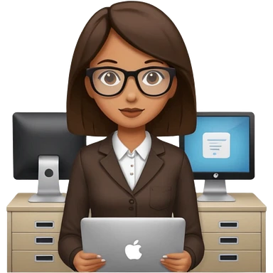Asian girl in her office room on computer emoji