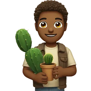 Make a cactus that has this smily face “😁” and a cowboy hat and holding shrooms emoji