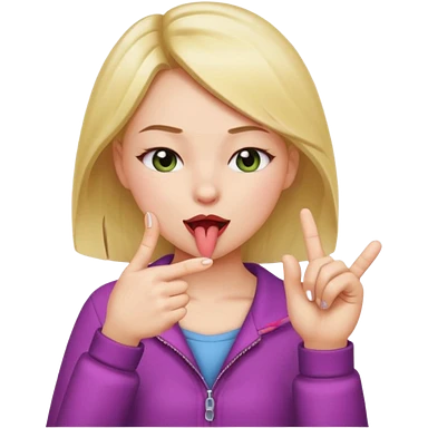 A girl in a all glitter shirt with big lashes on her eyes puts her thumb and pointer finger half way together with her tongue out emoji | AI Emoji Generator