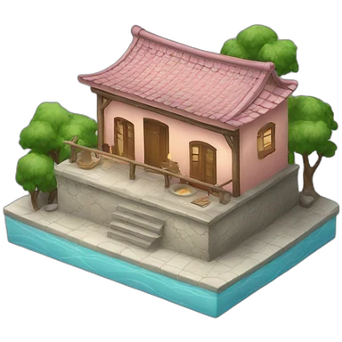 Maine boathouse, isometric dollhouse-style, realistic emoji