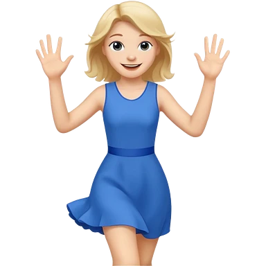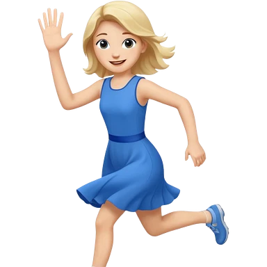 A girl in a blue dress runs and waves hello emoji | AI Emoji Generator