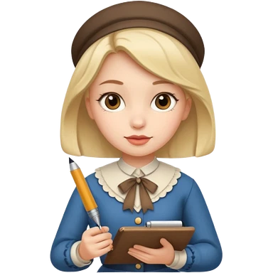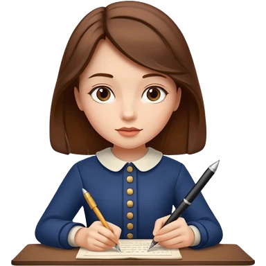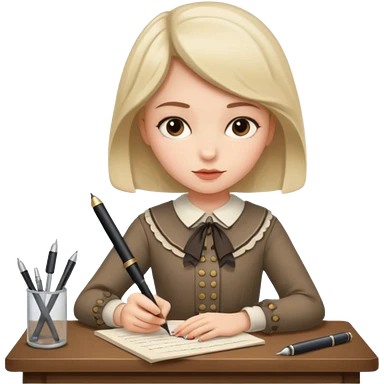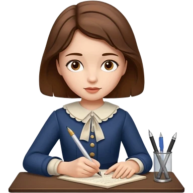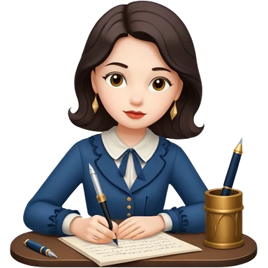 a girl is Writing in a Paper in a vintage outfit with old type pen emoji | AI Emoji Generator