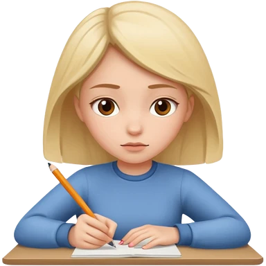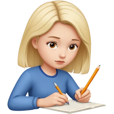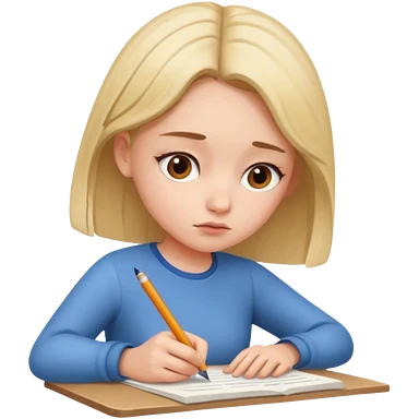 White Smart girl with blue eyes and light skin doing Homework on a desk writing on a piece of paper emoji