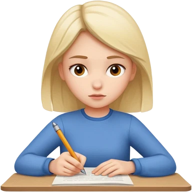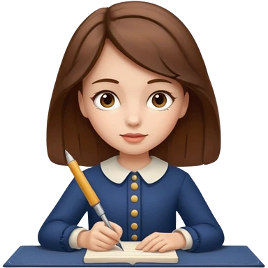 White Smart brown hair girl with blue eyes and light skin on a desk writing on a piece of paper emoji