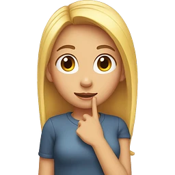 Brown-haired girl, puts her finger at her mouth, like a "secret" emoji
