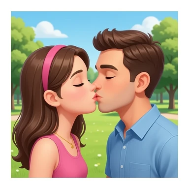 A girl 16 years old , and guy a 20 years old kisses in park emoji