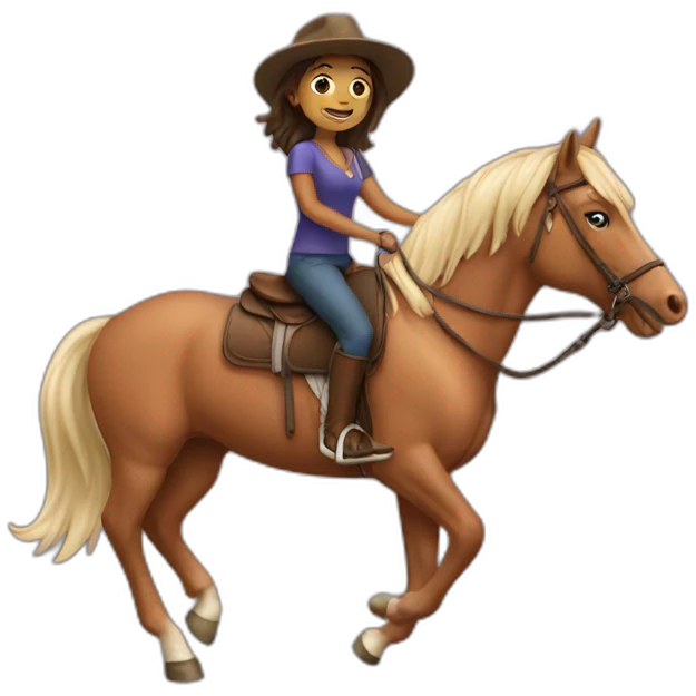 a little blonde girl with bangs and two ponytails rides a rocking horse emoji