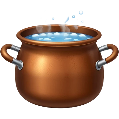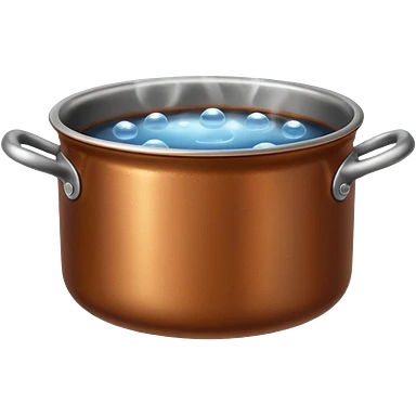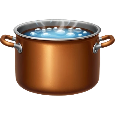brown small metal pot filled with boiling water on a stove, visible hot steam and rising bubbles, realistic heat effect, shiny pot surface, bright lighting, clean white background emoji