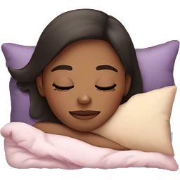 A girl with brown skin with curly and black hair sleep with pink bed cover emoji