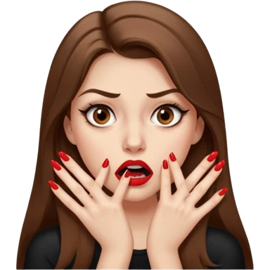 An emoji of a girl with brown hair aggressively biting her finger emoji