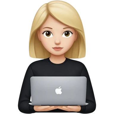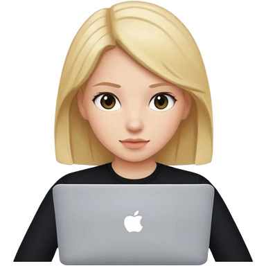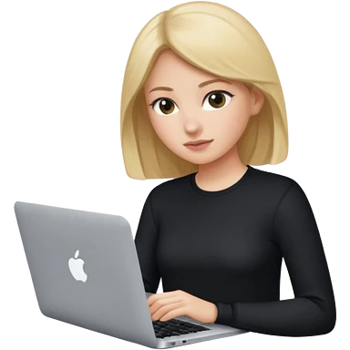 a girl using the mac book air with black emoji