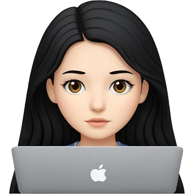 a girl typing mac book air with long black curly hair and brown eyes with winged black eyeliner emoji | AI Emoji Generator