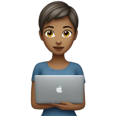 A girl using a MacBook to work on coding emoji | AI Emoji Generator