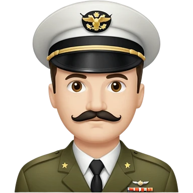 Military man with a very small black moustache. His hairline goes straight from left to right. He doesn’t wear a hat emoji