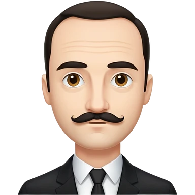 Man in black suit with a very small black moustache. His hairline goes straight from left to right. He doesn’t wear a hat emoji