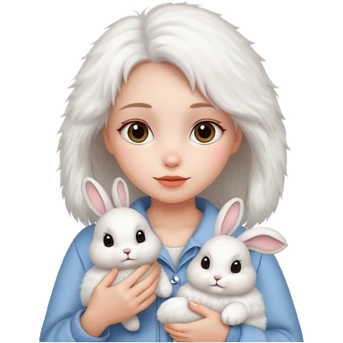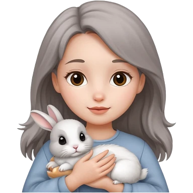 brown hair girl cuddling a cute grey rabbit emoji