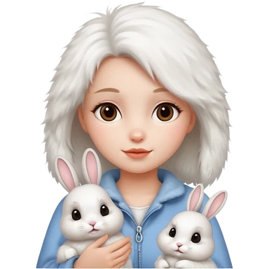 girl with cute grey rabbit emoji