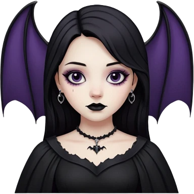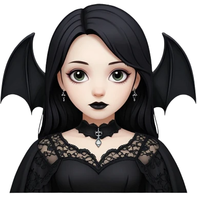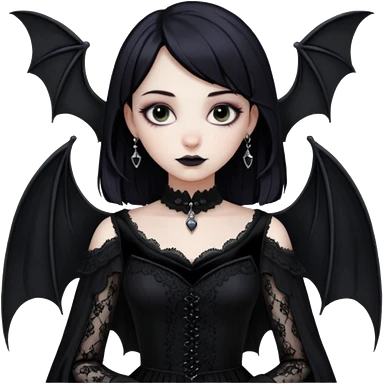 short-black-haired-red- eyed-Japanese-idol-girl with bat wings and a goth dress on emoji