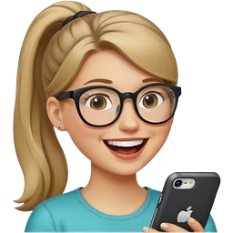 A girl with a round face and a ponytail and dark, gradual glasses emoji | AI Emoji Generator