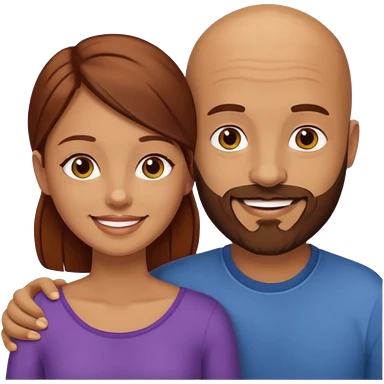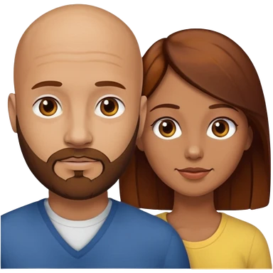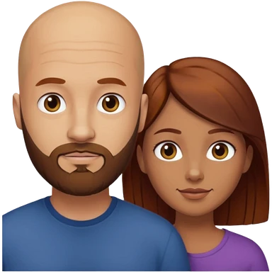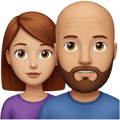 Couple. A bald man with dark brown beard and a girl with light skin dark yellowish brown auburn hair. emoji
