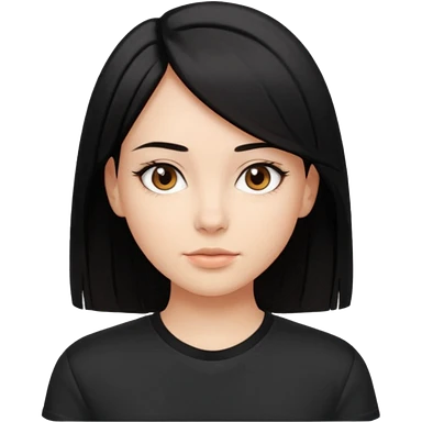 A girl with short, jet-black hair styled in a bob. Fair skin. Dark brown eyes. Smiling naturally. emoji