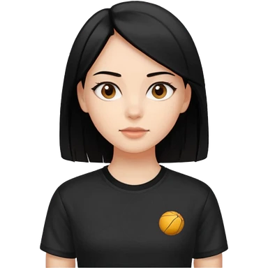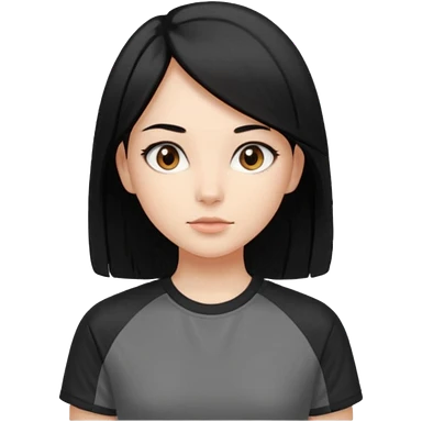 Make a girl with jet black hair that is straight and length till shoulders| brown eyes | oval head| an aesthetic style| sporty shirt emoji