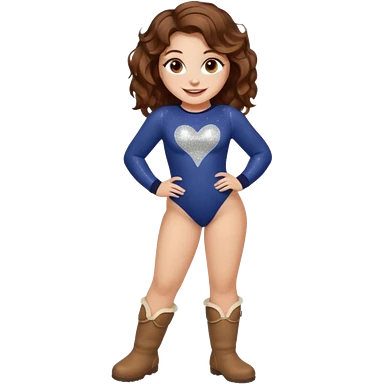 a beautiful girl with wavy volumes brown hazel hair, she has brown eyes and her face is unique, show her entire body she has big boobs and is so curvy make her wear a body suit with uggs with a big smile and her eyes sparkly and all cute emoji