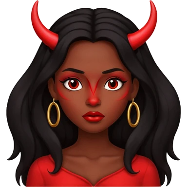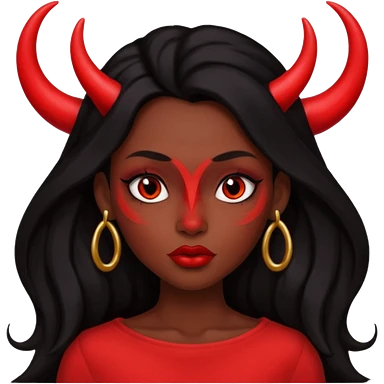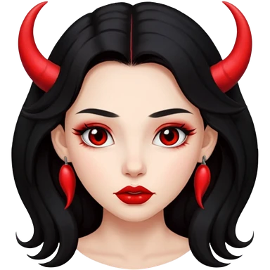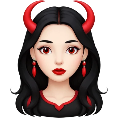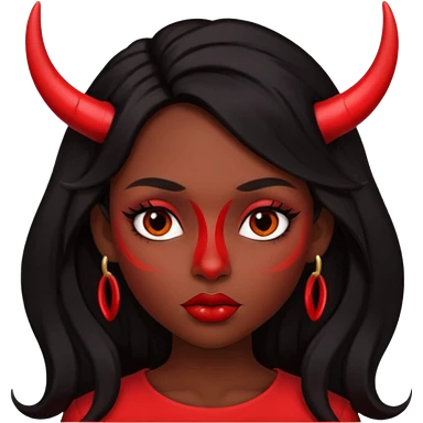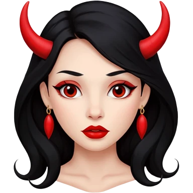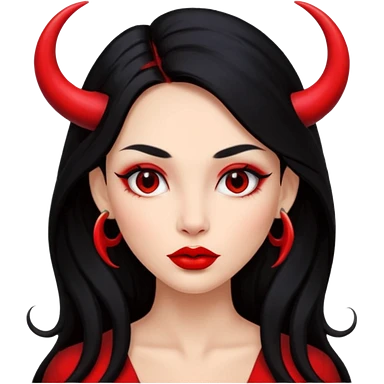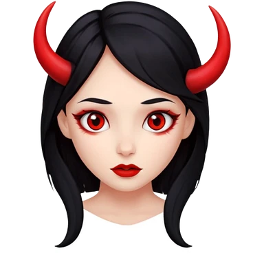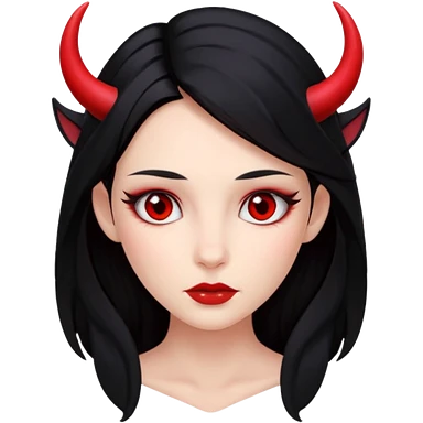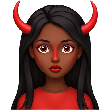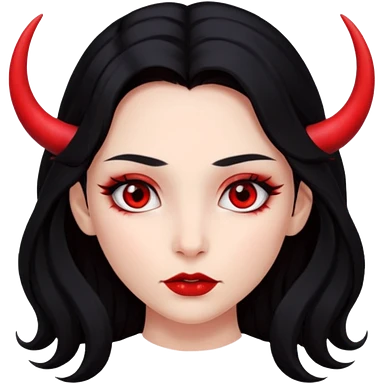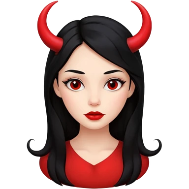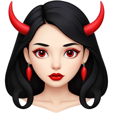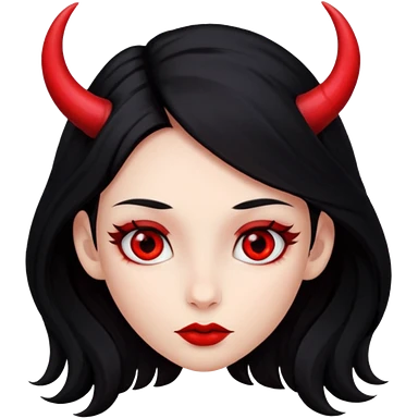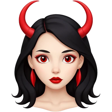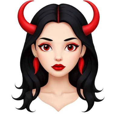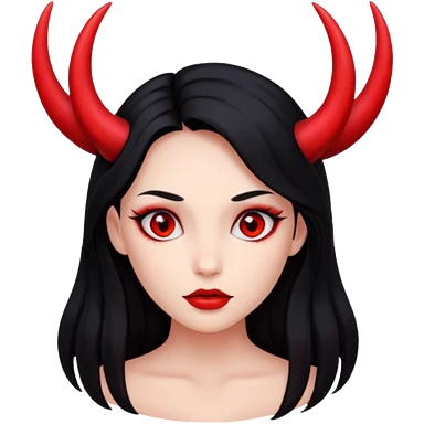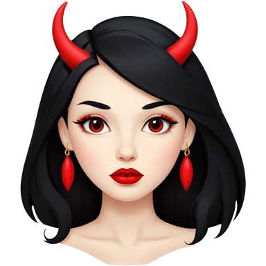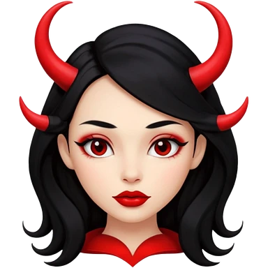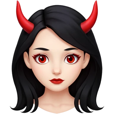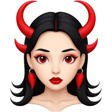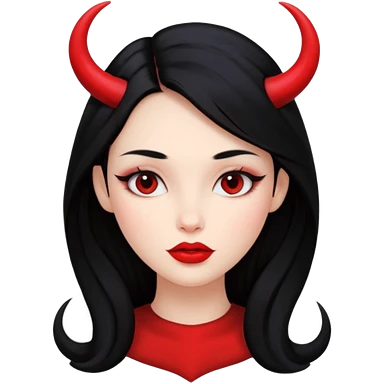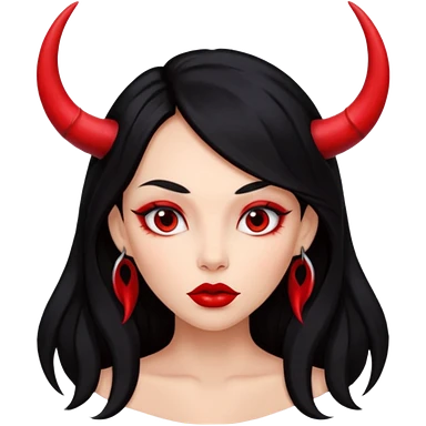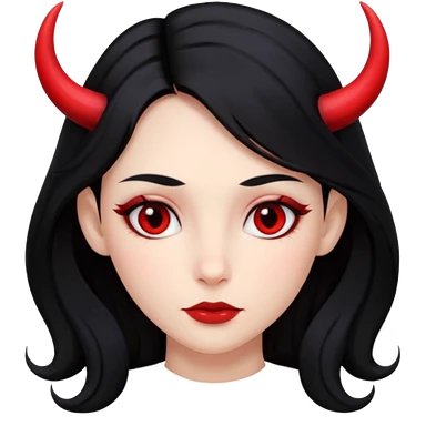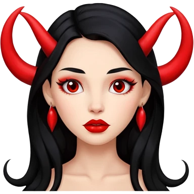 skin red A girl's face with cheekbones, long black hair, small red horns, big lips emoji