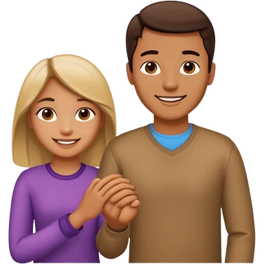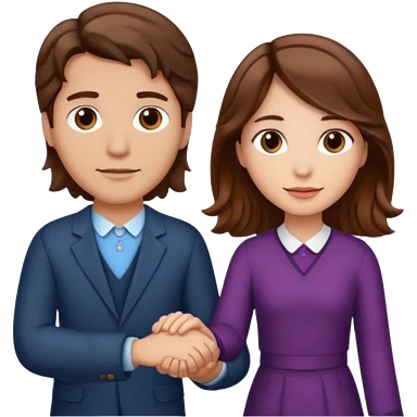 A girl with brown hair and a man with a middle wavy part holding hands emoji | AI Emoji Generator