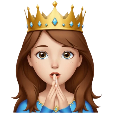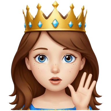 a girl with brown hair, blue eyes and freckles, who wears a crown and is blowing a heart kiss emoji | AI Emoji Generator