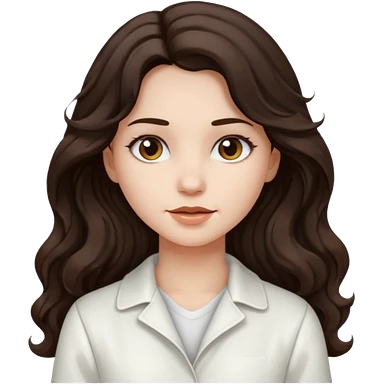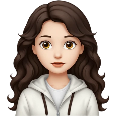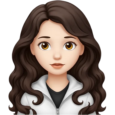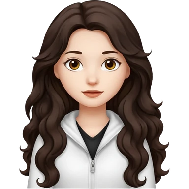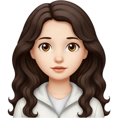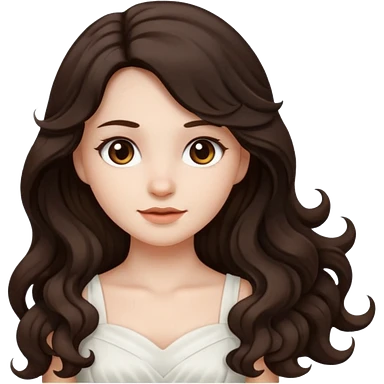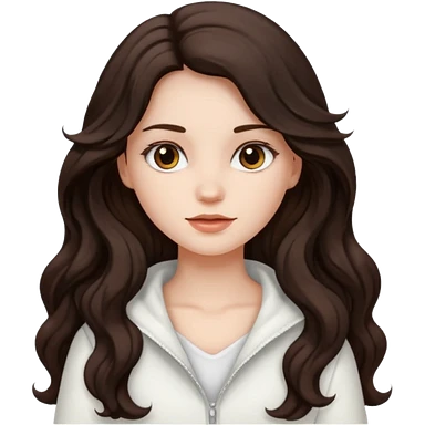 A girl in white with dark brown long wavy hair and very white skin emoji