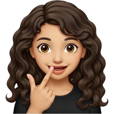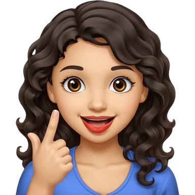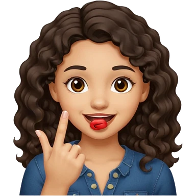 a light skin girl w black slight brown really tall wavy hair biting one fingering and smiling (in a flirty way) with big brown pretty eyes , make sure shes biting the finger, and the hair is wavy not curly emoji