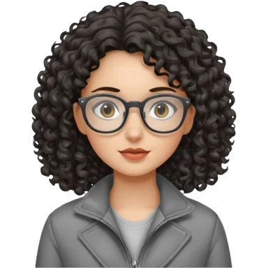 girl with dark curly hair, glasses and a gray jacket emoji