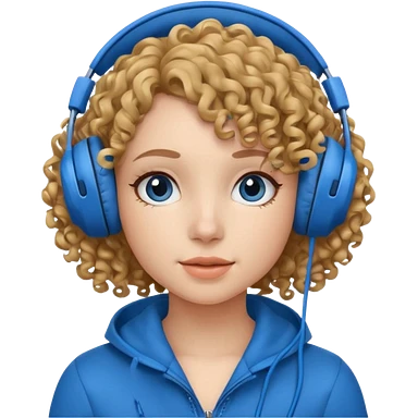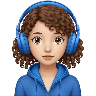 A girl with curly hair listening to music with blue headphones emoji | AI Emoji Generator
