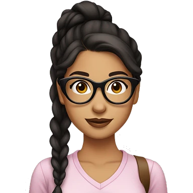 pretty girl latina with black glasses and dark brown hair in low ponytail emoji