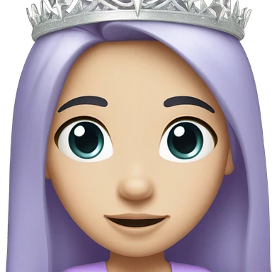 A girl with fair skin and a silver star crown with straight long black hair and cute lavender clothes happy emoji