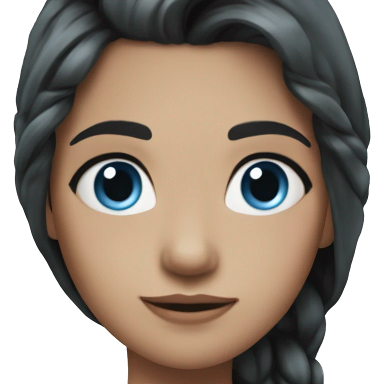 a girl with fair skin, straight long black hair, blue eyes, standing, very beautiful, very attractive emoji