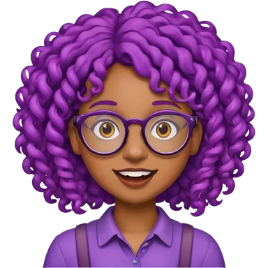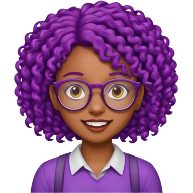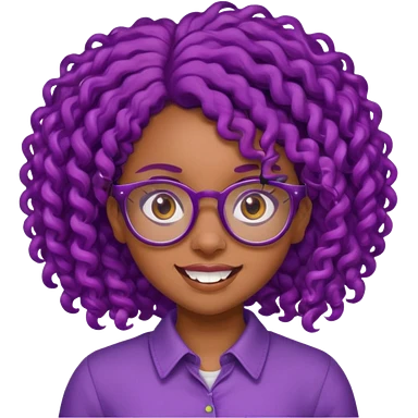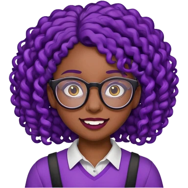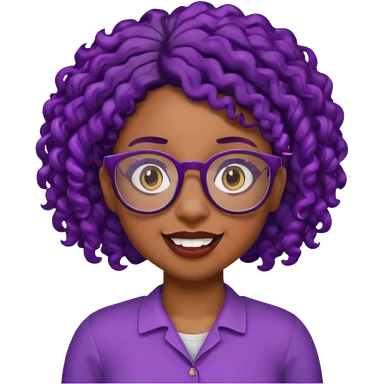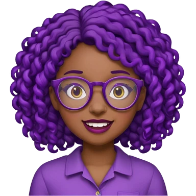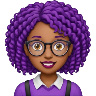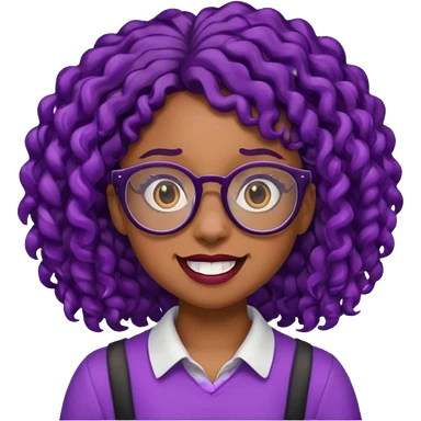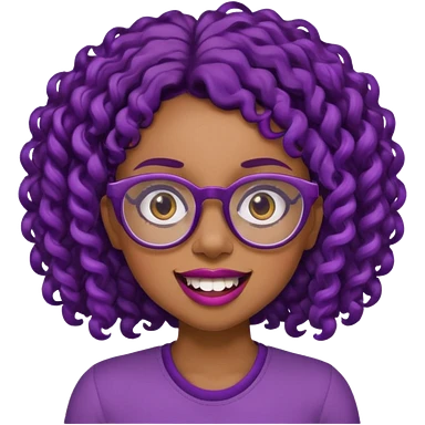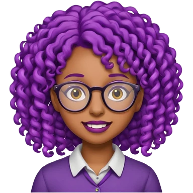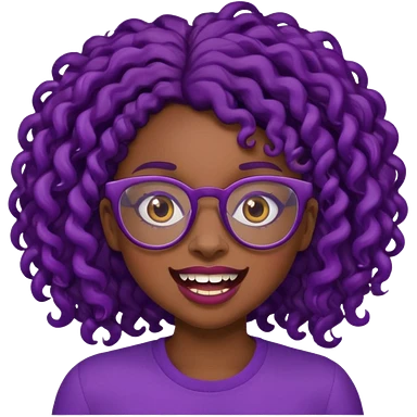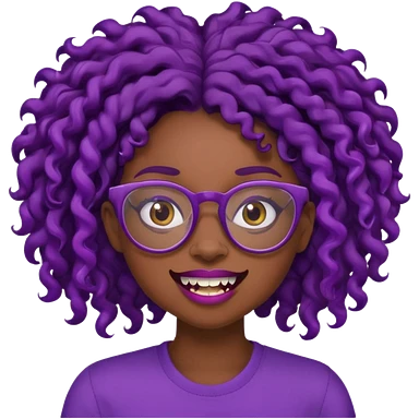 nerd emoji like with glasses and buck teeth but it’s a black girl with purple curly hair emoji
