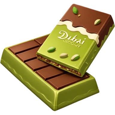 a dubai chocolate bar broken in half with pistachio and kataif paste coming out of it emoji