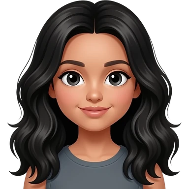 A girl with 3A long black curly hair and black eyes and eyebrows emoji