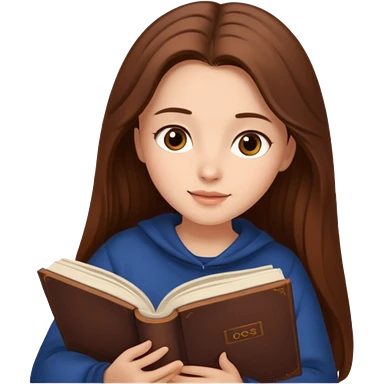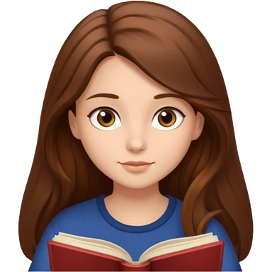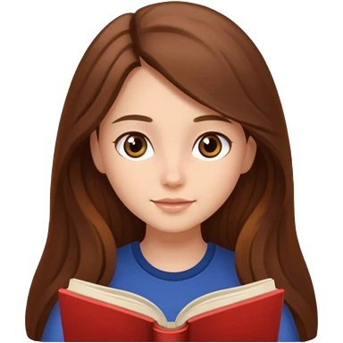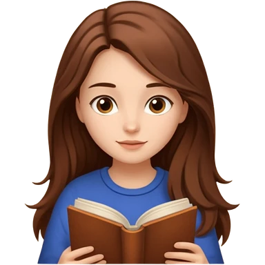A brown-haired, fair-skinned girl with long hair is reading a book. emoji