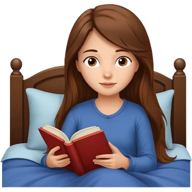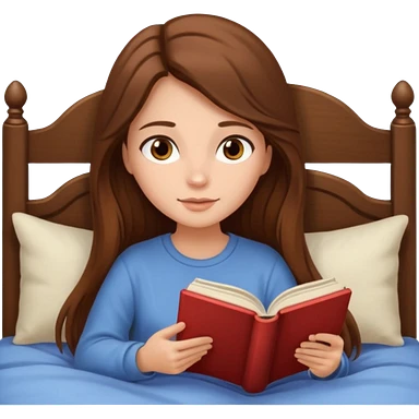 Cozy girl with long brown hair and brown eyes reading in bed emoji