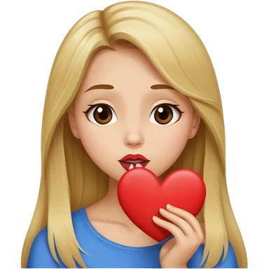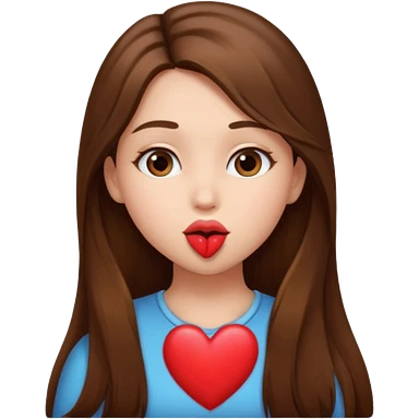 A girl with long brown hair sending a kiss/heart, no hand emoji | AI Emoji Generator