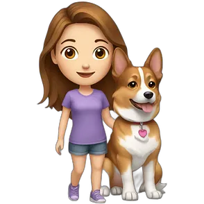 A girl with long brown hair walking a corgi emoji | AI Emoji Generator