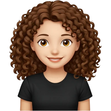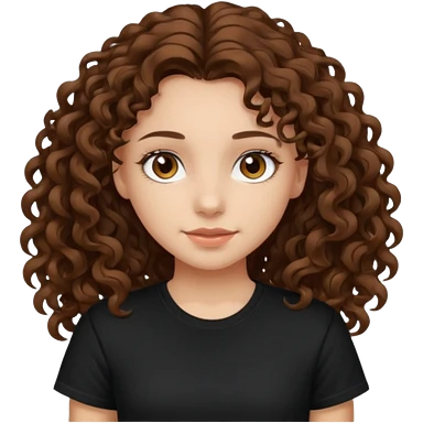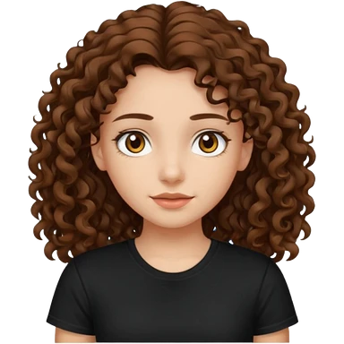 Brown eyes, long curly brown hair black t-shirt girl emoji