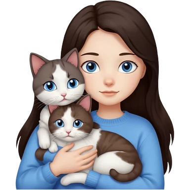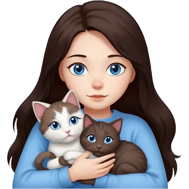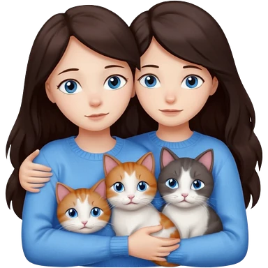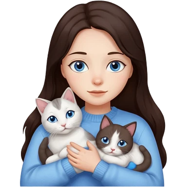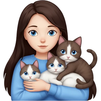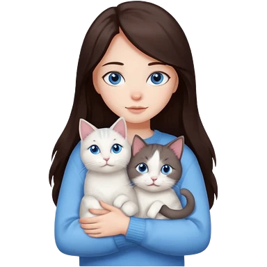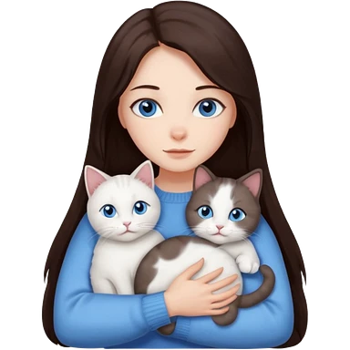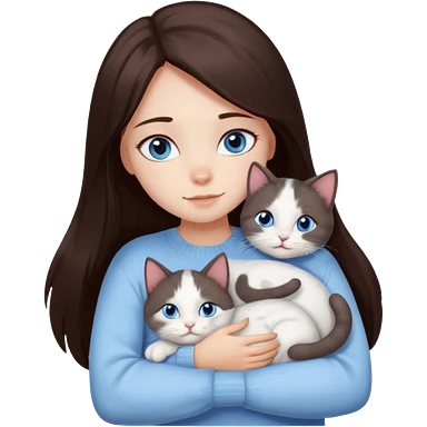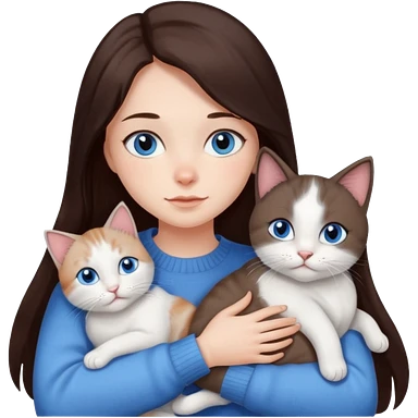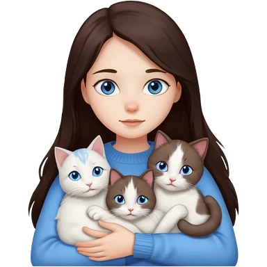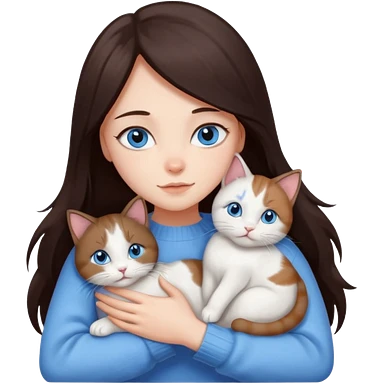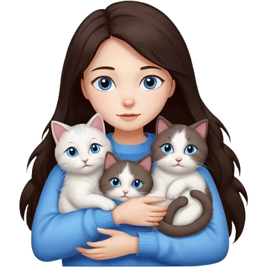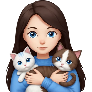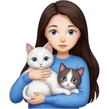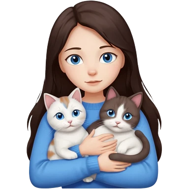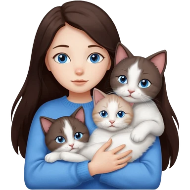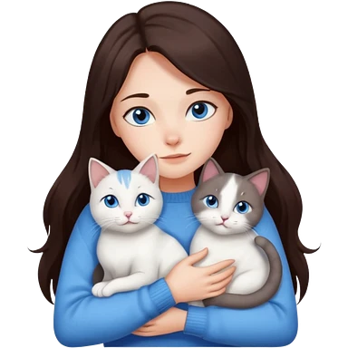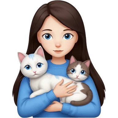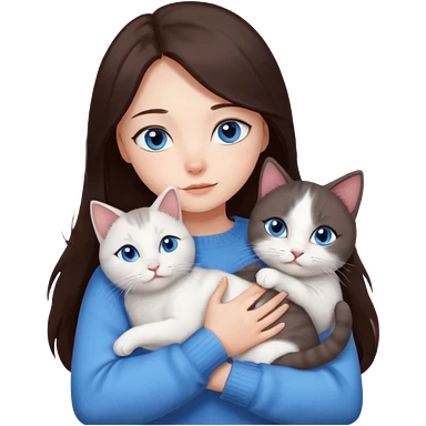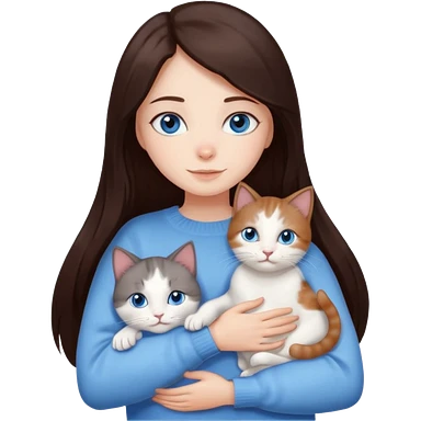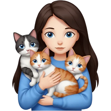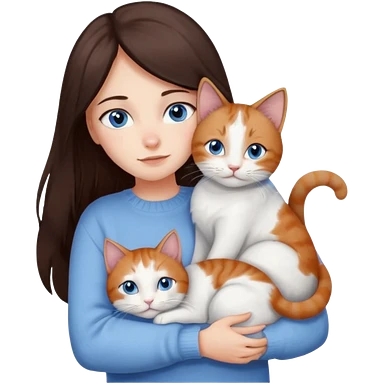 white sweater, hugs 3 cats a brown tabby and white, a ginger and white and a grey and white emoji | AI Emoji Generator