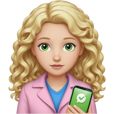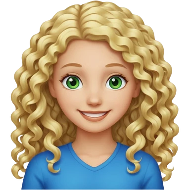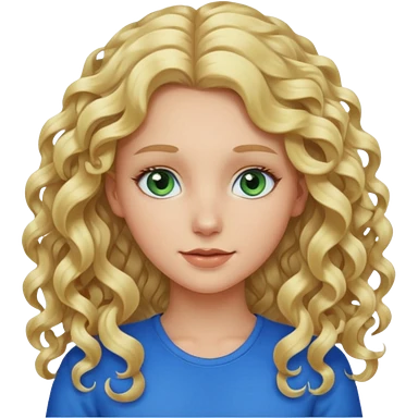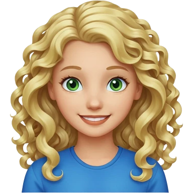 a white girl with long curly blonde hair, green eyes, skinny and with cute clothes emoji