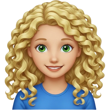 A girl with long hair, blonde, curly with green eyes emoji | AI Emoji Generator