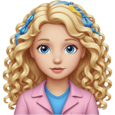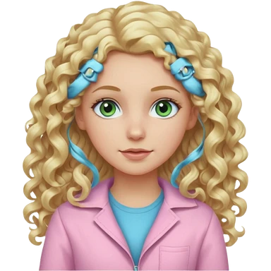 A white girl with long blonde curly hair and blue and green eyes emoji