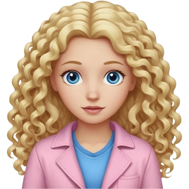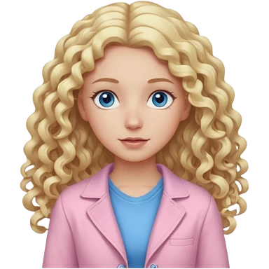 Blonde girl with dirty blonde curly long hair in a pink long sleeve shirt with green eyes portrait emoji